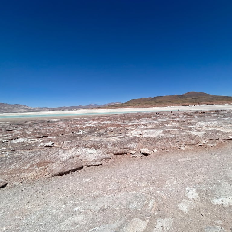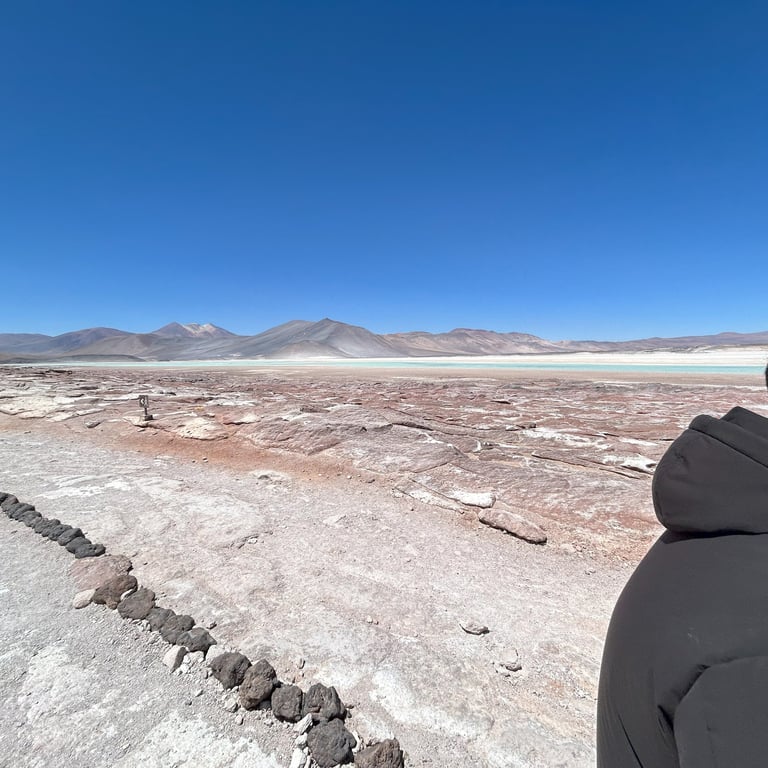 Ao chegar ao Salar de Água Calientes, a primeira coisa que me impressionou foi a vastidão do lugar. A paisagem árida se estendia até onde a vista alcançava, com tons de branco e azul que se misturavam com o céu limpo e ensolarado. A sensação de estar em uma imensidão tão fascinante.